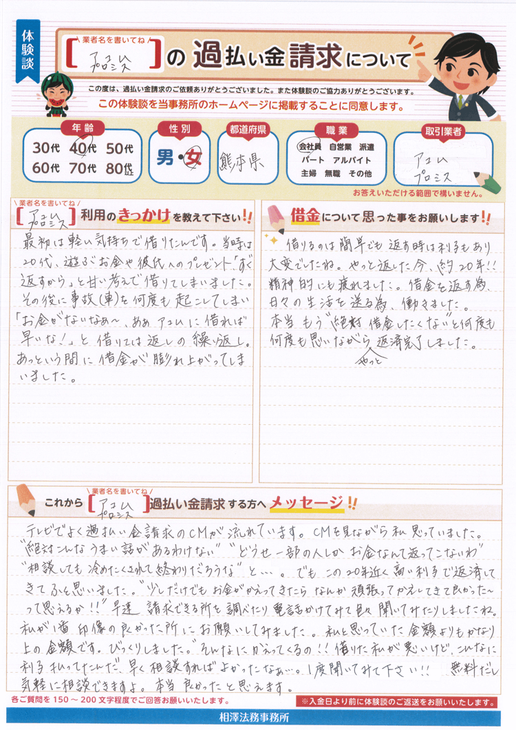 当時は20代、遊ぶお金や彼氏へのプレゼント「すぐ返すから」と甘い考えで借りてしまいました。