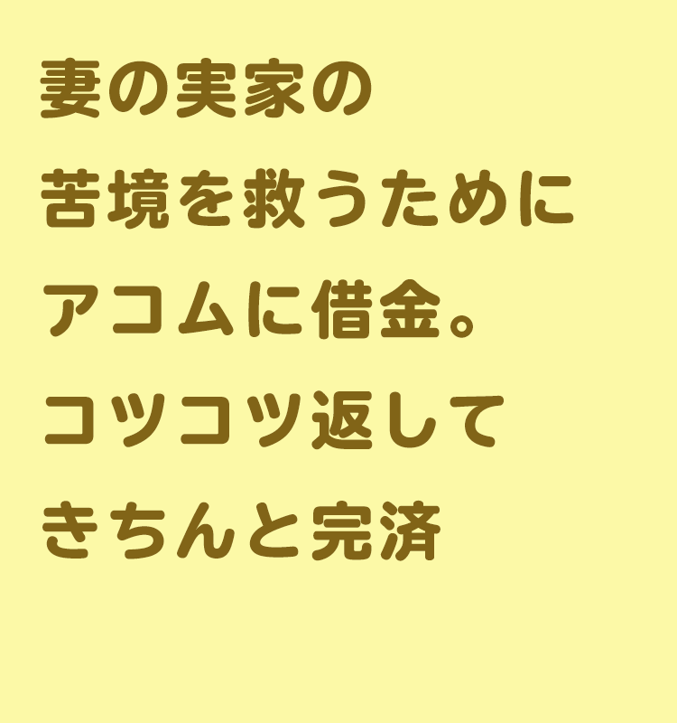 妻の実家の苦境を救うためアコム借金。地道に返してきちんと完済