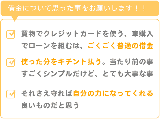 借金と聞くとなんだか後ろめたい様な感覚にもなりますが、使った分をキチント払う。