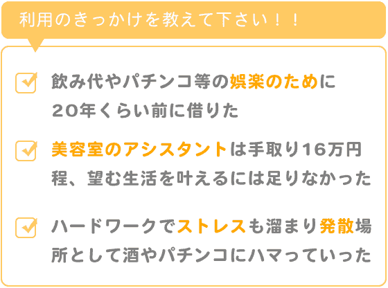 飲み代やパチンコ等の娯楽のためです。20年くらい前に借りました。