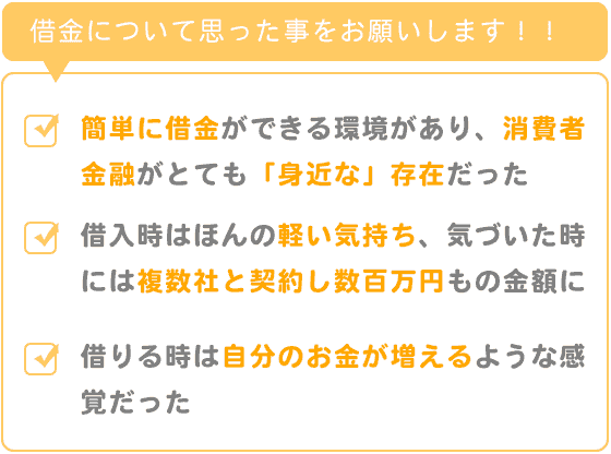 借りる時はほんの軽い気持ちで「すぐ返せるから」と思っていましたが、気づいた時には複数社と契約し数百万円もの金額に。