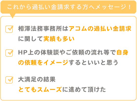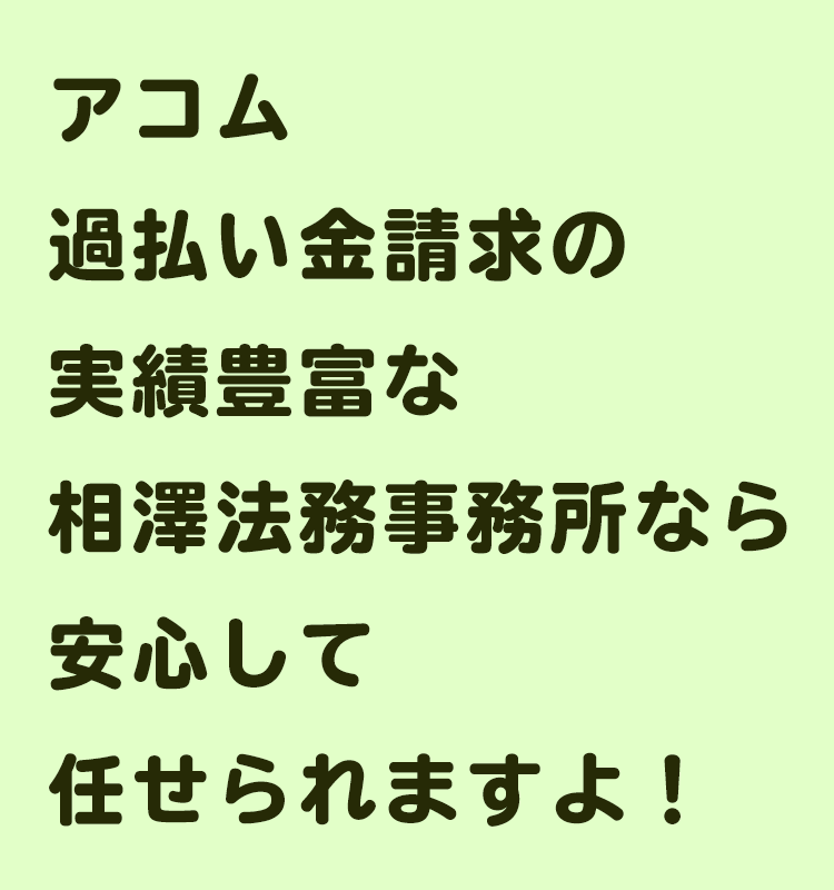 相澤法務事務所さんはアコムの過払い金請求に関してご実績も多いです。