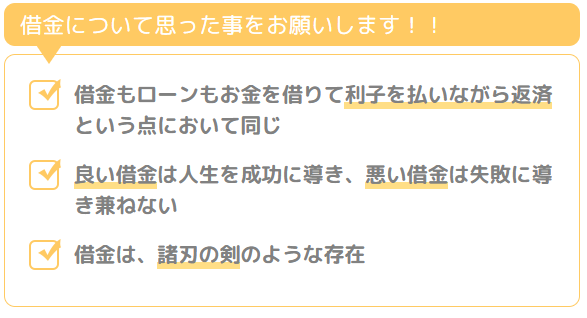 しかし身近に利用できるからこそ良い借金をすれば、その人の人生を成功に導き、悪い借金をすれば、失敗に導き兼ねません。