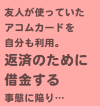 当時、複数あった金融業者の中で、アコム契約の1番の理由は、親しい知人が既にアコムを利用していた事が何よりも安心感や説得力があり、金銭面の保険として1枚くらい持っておこうと軽い気持ちで契約したのがきっかけでした。