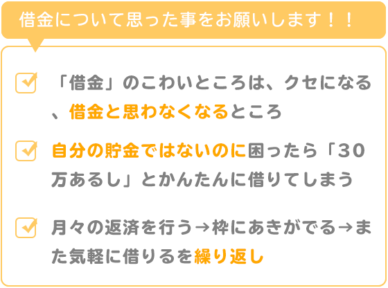 「借金」のこわいところは、クセになる、借金と思わなくなるところだと思います。