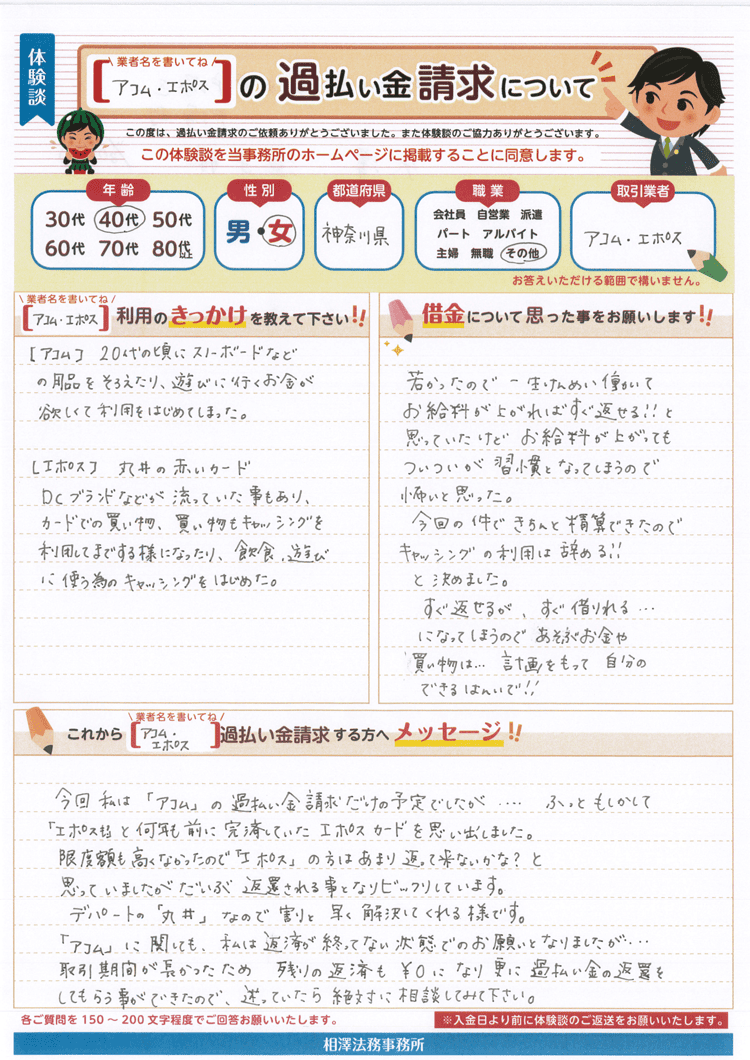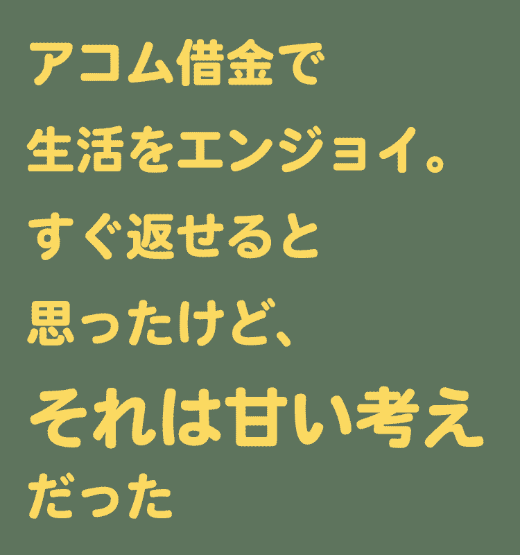〔アコム〕20代の頃にスノーボードなどの用品をそろえたり、遊びに行くお金が欲しくて利用をはじめてしまった。