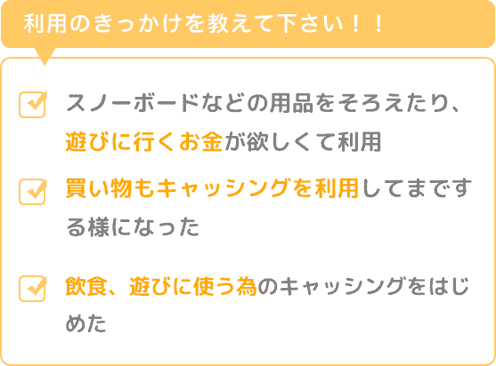 すぐ返せるが、すぐ借りれる…になってしまうのであそぶお金や買い物は…計画をもって自分のできるはんいで!!