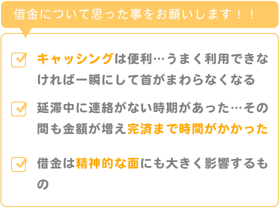 この経験後から、もう借金はしないと決めましたし、完済したあとはほっとしています。