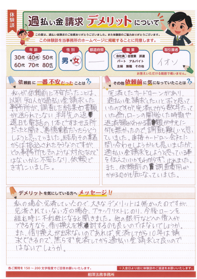 イオン過払い金請求…どの事務所も悪徳業者では?と思っていた