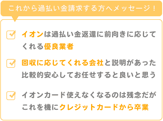 イオンは過払い金返還に前向きなカード。そう教えてもらえて安心