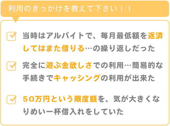 改めて振り返ると、生活に困っているというよりは完全に日々の遊ぶ金欲しさでの利用でした。