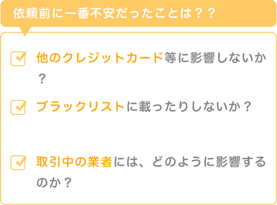一番の不安点は他のクレジットカード等に影響したり、ブラックリストに載ったりしないかという点です。