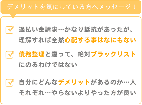 債務整理と違って、ブラックリストにのるわけではなく、気がるに出来ると思ったと、自分は思っています。