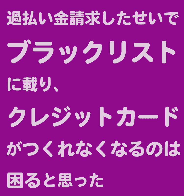 ブラックリストにのってしまって、クレジットカードが作れなくなったり、賃貸住宅や車や、買い物もできなくなるのではないかと思うと、相談したりすることもためらいました。