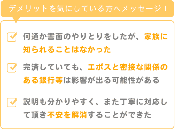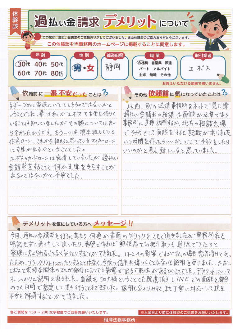 エポスのカードローンは完済していましたが過払い金請求をすることで何か支障をきたすことがあるのではないかと不安でした。
