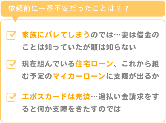 今回、過払い金請求を行うにあたり何通か書面のやりとりをさせて頂きましたが、事務所名を明記せずに送付して頂いたり、希望であれば郵便局での受け取りも選択できたりと家族に知られることなくやりとりすることができました。