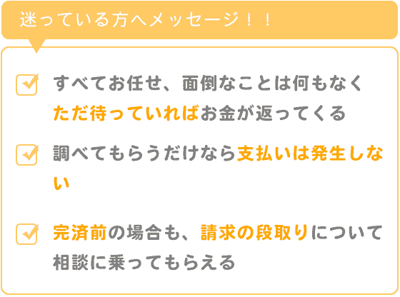 すべてお任せすれば、面倒なことは何もなく、ただ待っていれば、お金が返ってきます。
