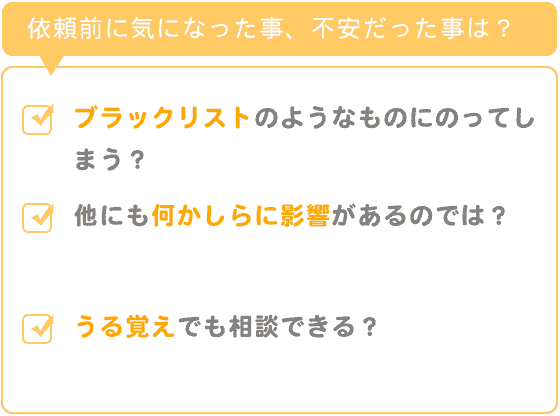 1番の不安は相談したらブラックリストのようなものにのってしまうのではないかという事です。