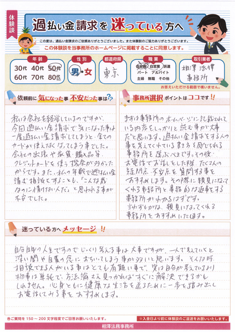 また、私の年齢で過払い金請求相談をすることも、「こんな歳なのに情けない人だ」と思われる事が不安でした。