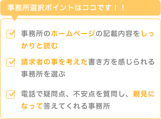 言わずもがな、親見になってくれる事務所をおすすめいたします。