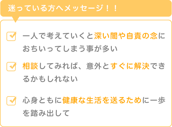 心身ともに健康な生活を送るために一歩を踏み出しお電話してみる事をおすすめします。