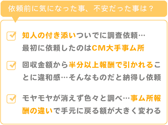 知人の付き添いでついでにCM大手事ム所に依頼したが…