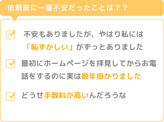 最初にホームページを拝見してからお電話をするのに実は数年掛かりました。すごく勇気がいりました。