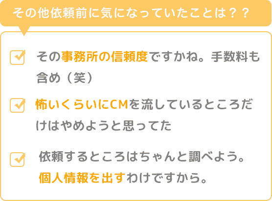 その事務所の信頼度ですかね。手数料も含め(笑)