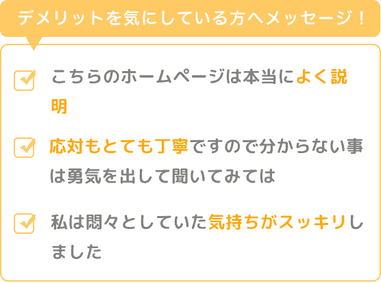 でもこちらのホームページは本当によく説明してくださっているので、よく読み事務所の方の応対もとても丁寧ですので分からない事は勇気を出して聞いてみてはいかがでしょう。