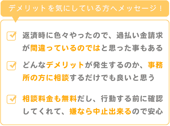 自分は今回の過払い金請求する事によってデメリットは何一つ有りませんでした。