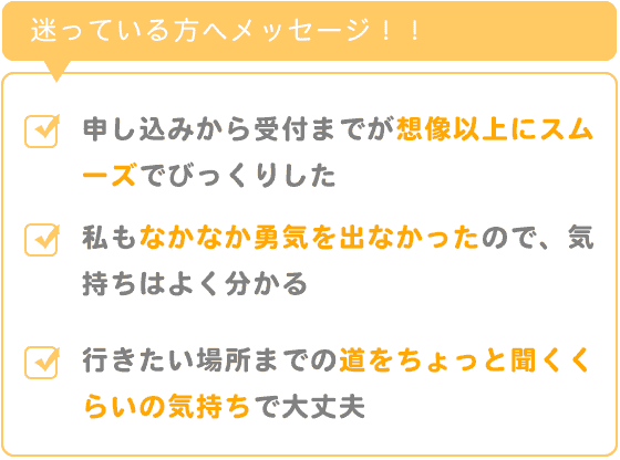 上記の不安や迷う気持ちがあったので、申し込みから受付までが想像以上にスムーズだったことにびっくりしました。