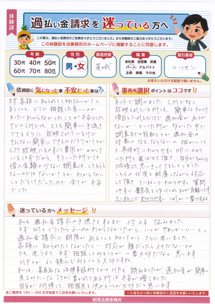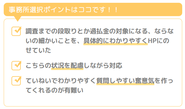 ネットで調べました。CMで多く放映されている所は、簡単なチェック項目を入れるだけで、過払金があるかないか…といった所が多かった中で調査までの段取りとか過払金の対象になる、ならないの細かいことを、具体的にわかりやすくHPにのせていた所を選ばせて頂き、自分がちゃんと納得して思いきってTELをしましたこちらの状況を配慮しながら対応して頂きていねいでわかりやすく質問しやすい奮意気を作ってくれるのが有難いです。