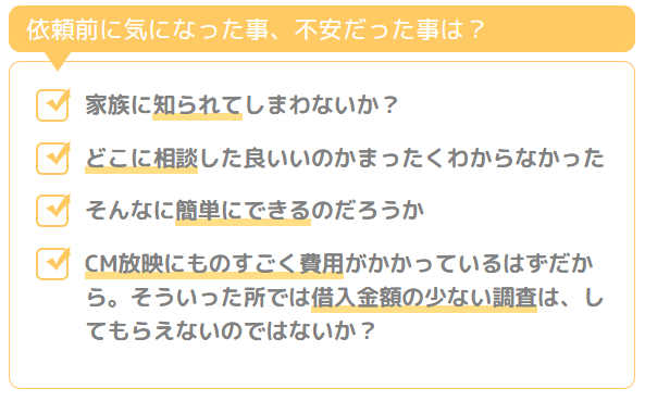 そういった所では借入金額の少ない調査は、してもらえないのではないか?とか、わからないことだらけだったので全てが不安でした。