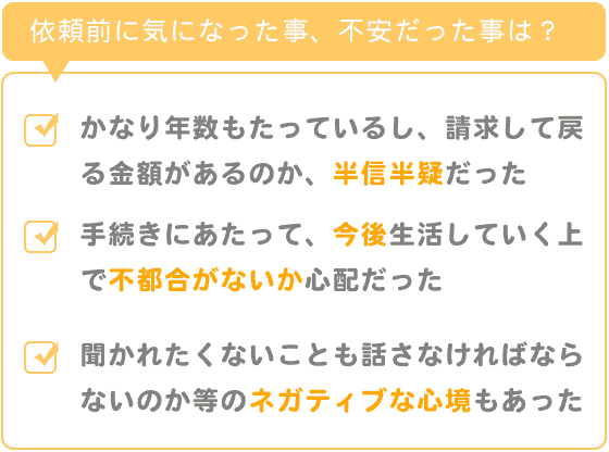 かなり年数もたっていましたし、そもそも請求して戻る金額があるのか、半信半疑でした。