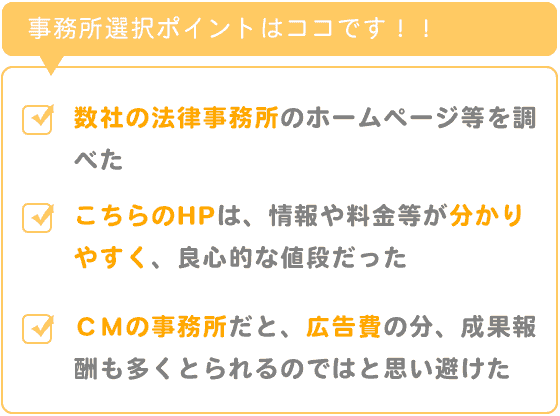テレビやラジオCMでよく耳にするような事務所だと、広告費をかけている分、成果報酬も多くとられるのではないかと思って、そちらは避けていました。