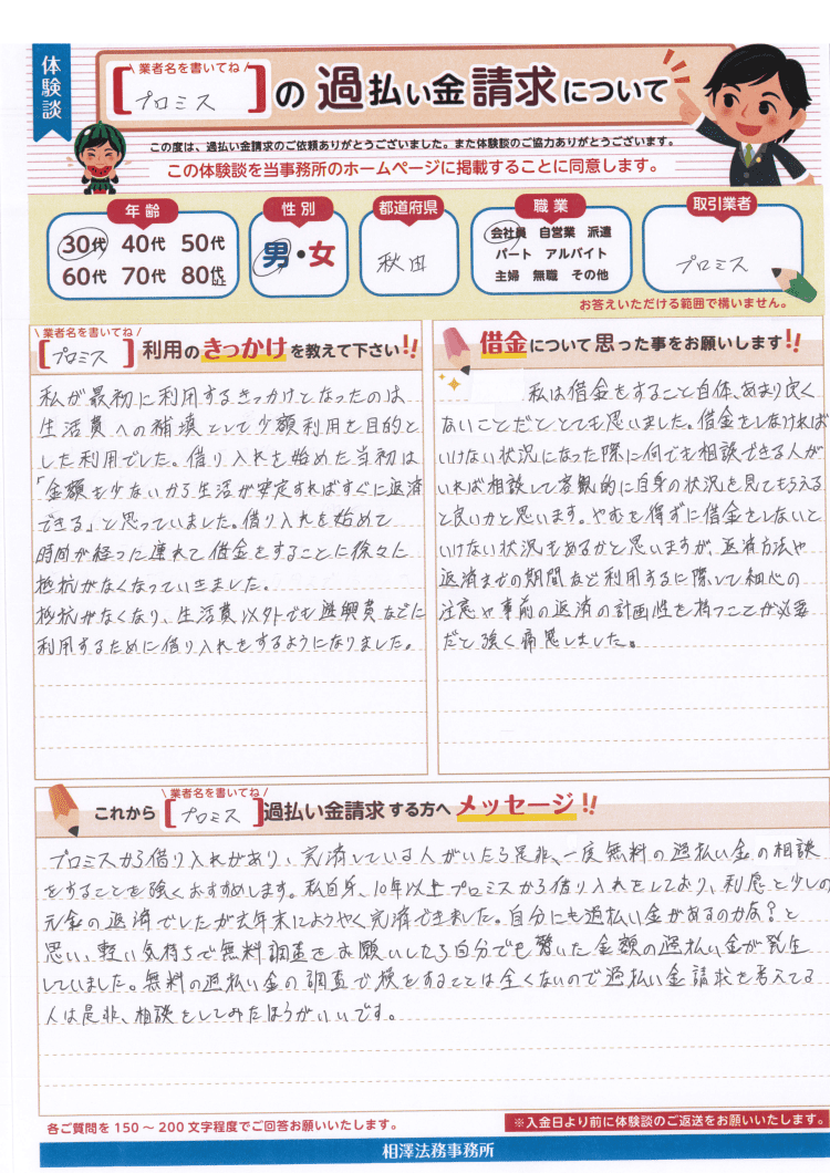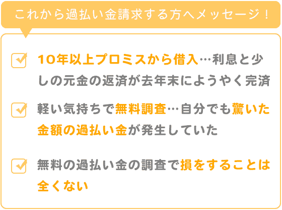 プロミスから借り入れがあり、完済している人がいたら是非、一度無料の過払い金の相談をすることを強くおすすめします。