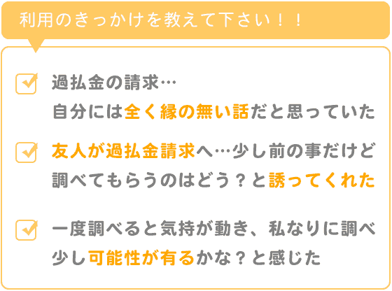 テレビその他で過払金の請求については沢山耳にしていました。けれど、自分には全く縁の無い話だと思っていました。