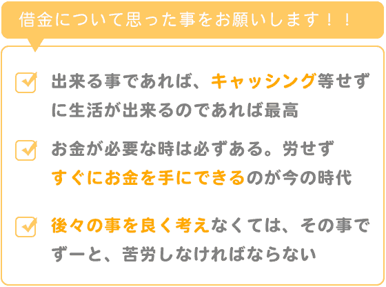 人は各々に生きる為に、色々な事情をかかえています。出来る事であれば、キャッシング等せずに、生活が出来るのであれば最高です。