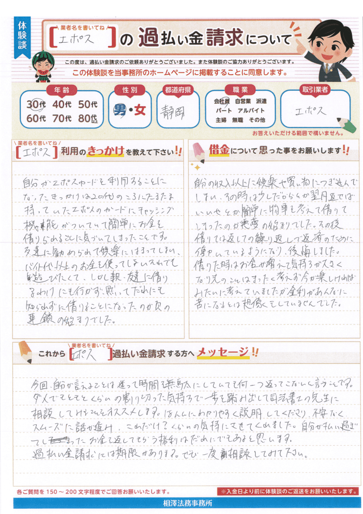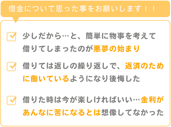 その後借りては返しての繰り返しで返済のために働いているようになり、後悔しました。