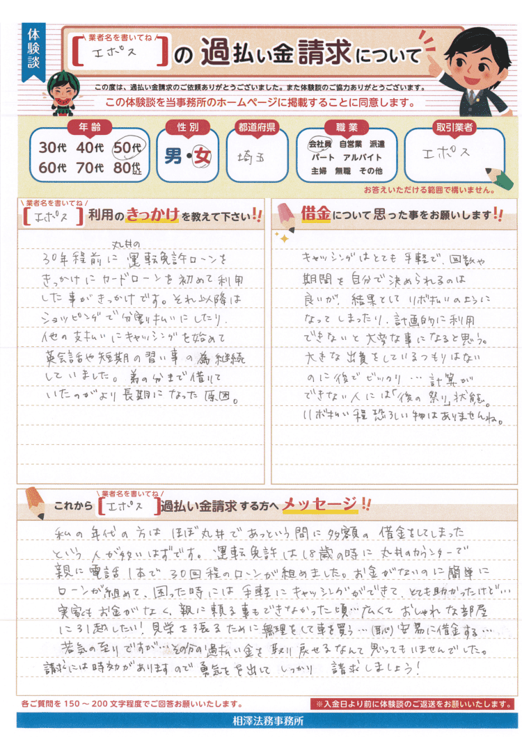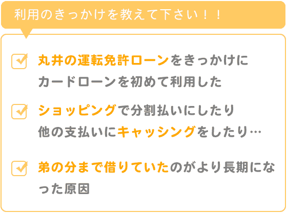30年程前に丸井の運転免許ローンをきっかけにカードローンを初めて利用した事がきっかけです。