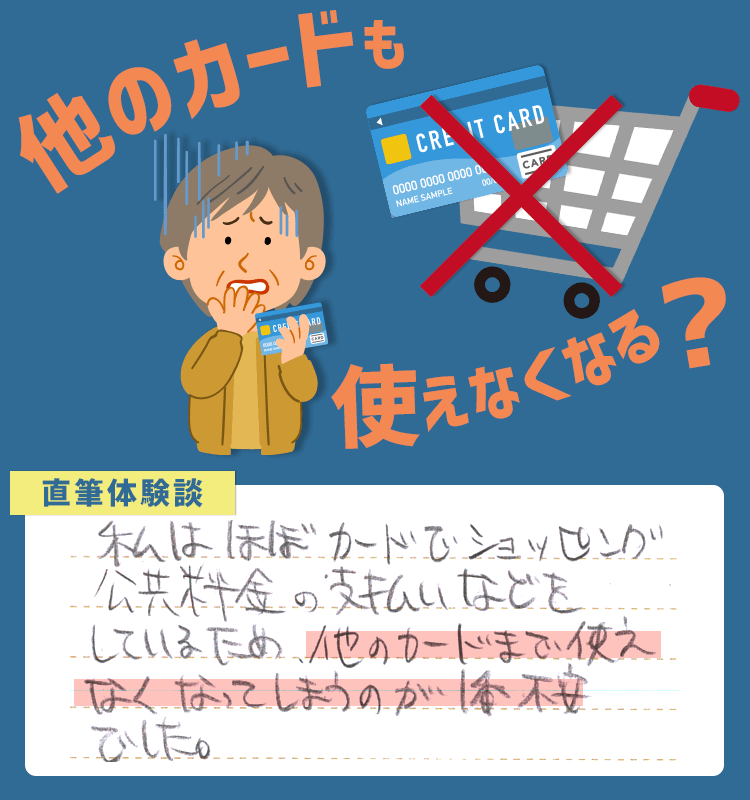 私はほぼカードでショッピング公共料金の支払いなどをしているため、他のカードまで使えなくなってしまうのが1番不安でした。