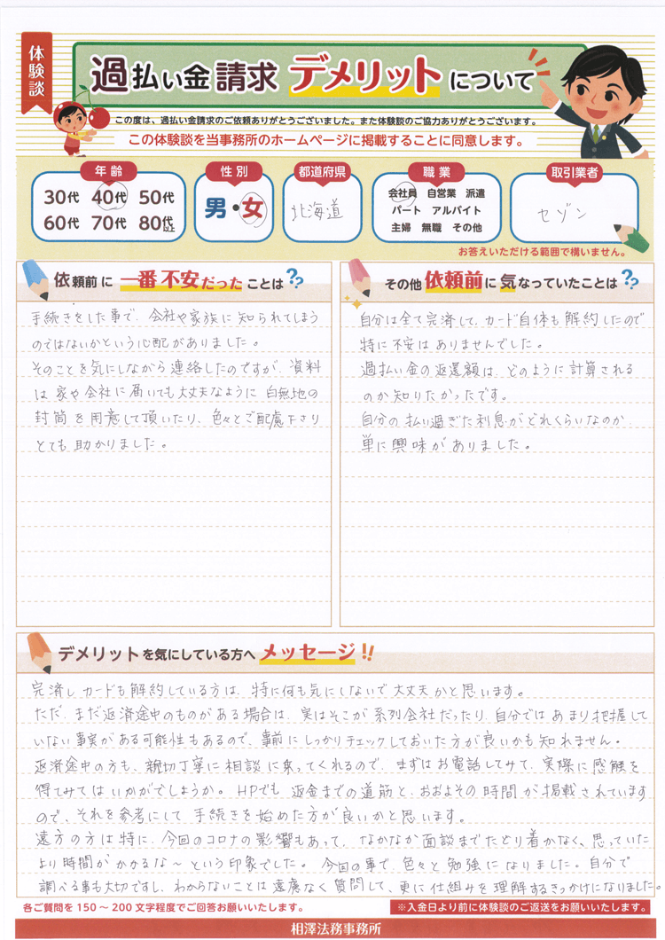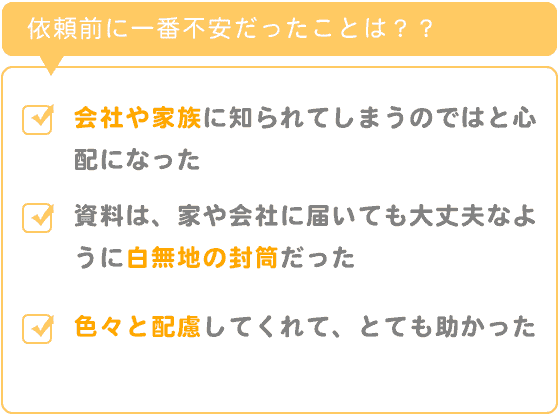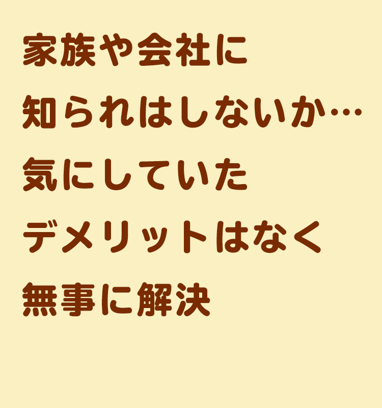 家族や会社に知られはしないか…そんなデメリットはなく無事解決