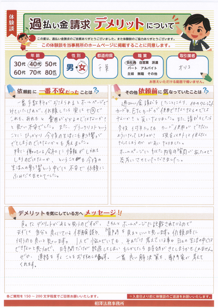 またブラックリストということにひっかかり今後の生活にも影響がでてしまうのではないかとも考えました。
