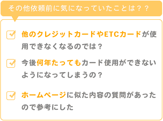 過払い金請求をしたことにより、他のクレジットカードやETCカードが使用できなくなるのではないか?と気になりました。