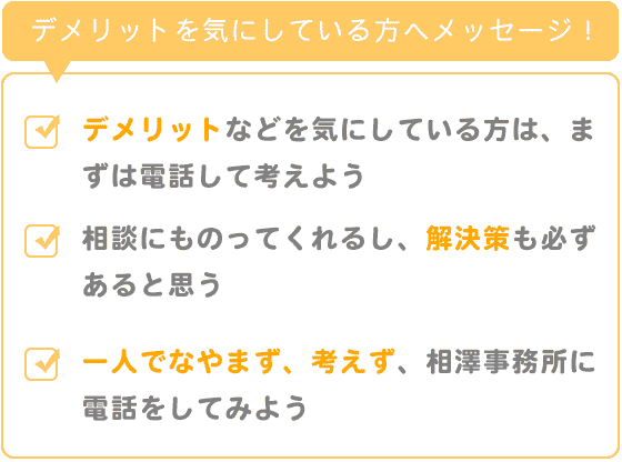 一人でなやまず、考えず、まずは相澤事務所に電話をしてみましょう。
