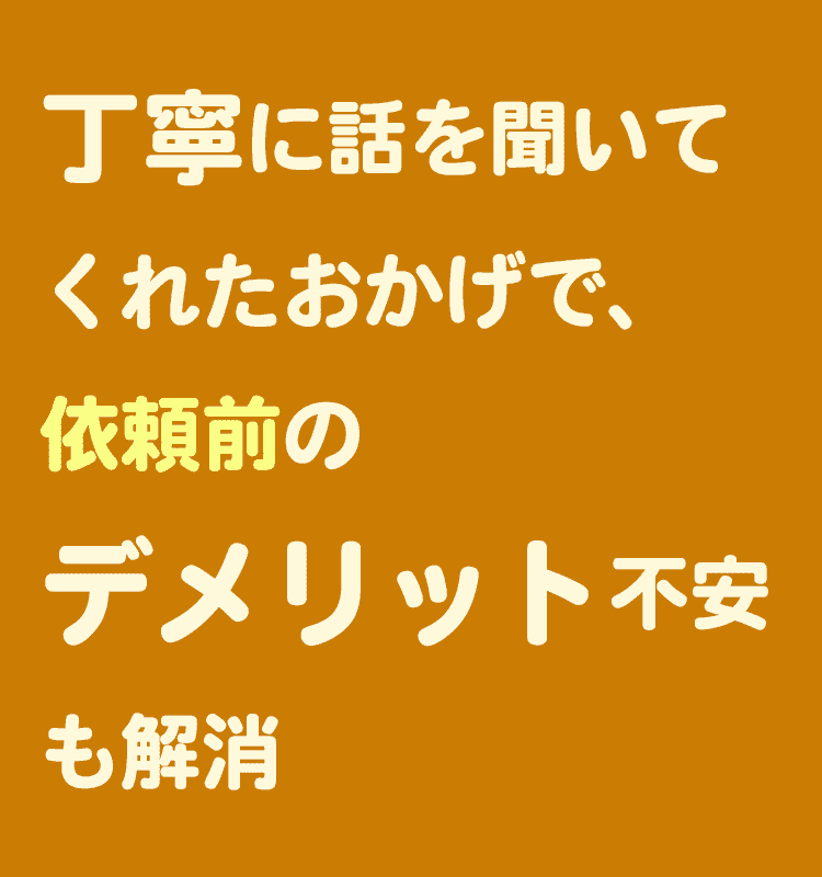 丁寧に話を聞いてくれたおかげで、依頼前のデメリット不安も解消
