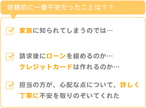 また、請求後のローンを組めるのかや、クレジットカードが作れるか等も心配でした。