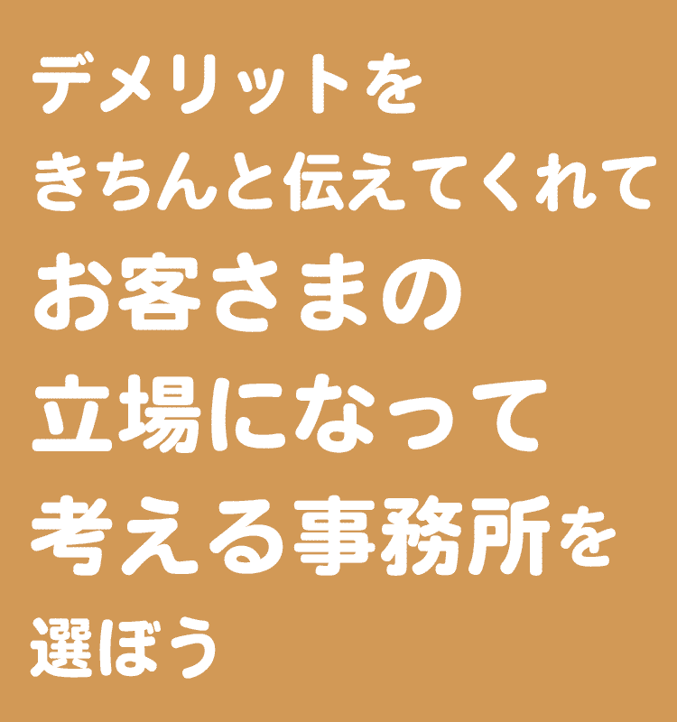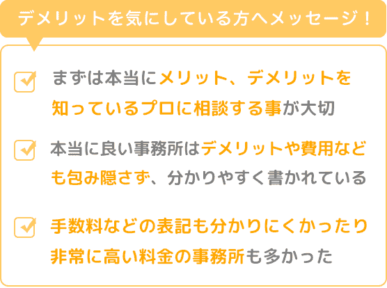 本当に良い事務所はデメリットや費用なども包み隠さず、分かりやすく書かれていると思います。