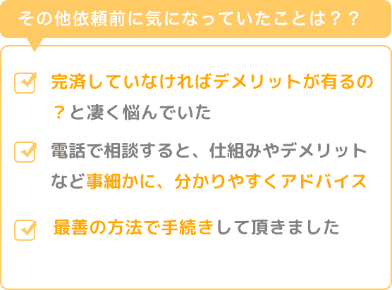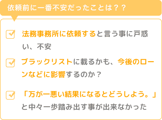もう一つはブラックリストに載るかも、今後のローンなどに影響するのか?と言う事が不安で心配でした。