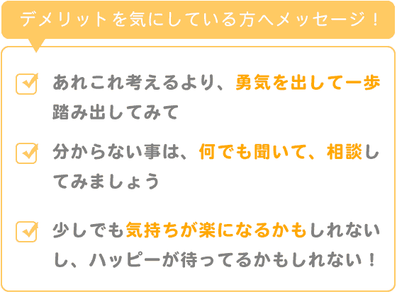 今より少しでも気持ちが楽になるかもしれないし、ちょっとしたハッピーが待ってるかもしれませんよ!